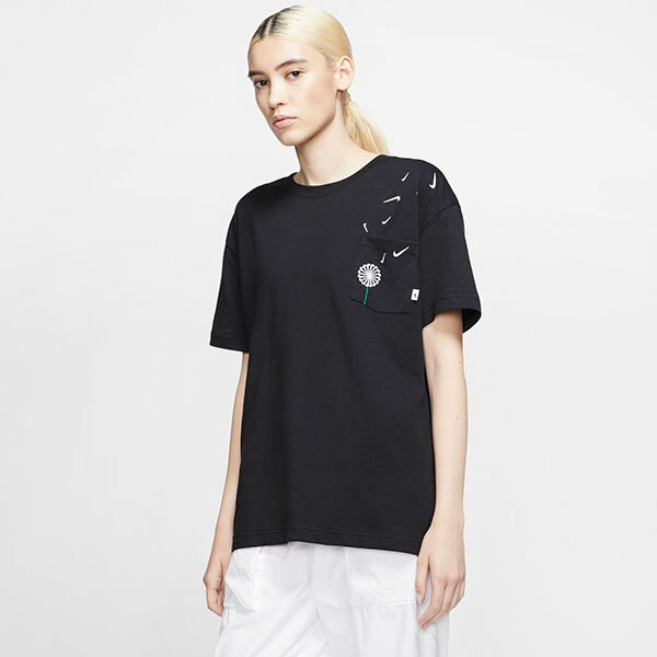 ■商品コメント NIKE WOMENS NOVEL-T 2 PKT T-SHIRT ナイキ ウィメンズ ノベル-T 2 PKT Tシャツ 婦人・女性用 胸元にあしらった刺繍がポイントのロゴTeeシャツ。